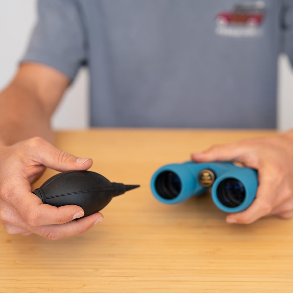 Use the dust blower to get rid of any excess dust particles that might still be on the lens face and potentially block light from your view.